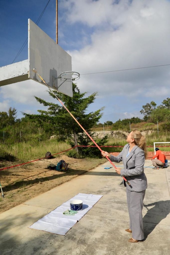 La Presidenta Zuppa Villegas explicó que personal de diversas áreas del Ayuntamiento, como las direcciones de Servicios Públicos, Obras Públicas, Medio Ambiente, Educación, Agua Potable, así como la Coordinación de Protección Civil y la Jefatura de Programas Sociales, “días previos hacen un levantamiento de necesidades; la madrugada de los lunes llegan a las escuelas y en tan solo ¡2 horas y media! las renuevan”.