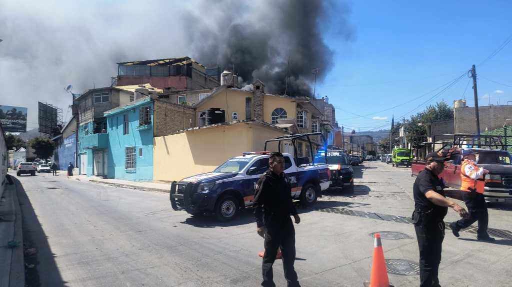 El incendio se registra en un inmueble de unos 500 metros cuadrados, ubicado en la esquina de las avenidas San Andrés de la Cañada y calle José María Morelos, en dicha comunidad, donde los vecinos fueron desalojados como medida preventiva y también se suspendió el servicio del Mexicable.