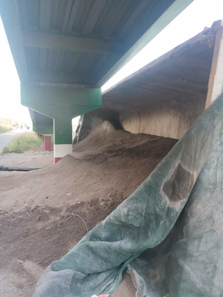 Ecatepec, Méx.- Elementos de Protección Civil, Bomberos y Tránsito Municipal atienden la volcadura de un tracto camión cargado con 25 toneladas de arena que se volcó esta mañana en carriles centrales de Avenida Central a la altura de Metro Ecatepec, sin que se registraran lesionados, pero sí un intenso tráfico en la zona debido a las maniobras para retirar la unidad pesada.