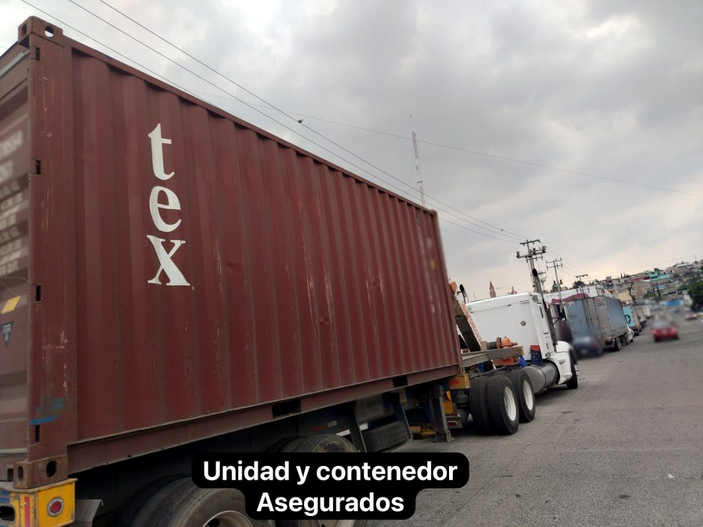 Durante recorridos de seguridad en el marco del Operativo Blindaje, como parte de las acciones instruidas en las Mesas de Paz, personal de la SSEM recibió un alertamiento a través de grupos de coordinación interinstitucional, sobre un portacontenedor desaparecido, de la marca Reyvol Tank Zada, color azul, que transportaba un contenedor marítimo que en su interior llevaba un líquido empleado en la elaboración de colchones.
