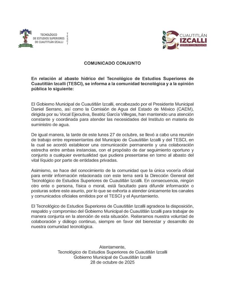Gobierno y TESCI de Izcalli informan a la opinión pública