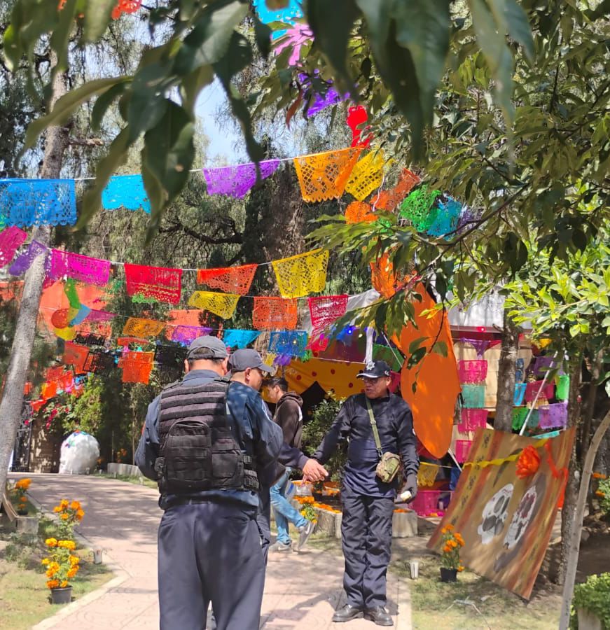 Cabe destacar que la presencia de los oficiales de Seguridad, el personal de Protección Civil y Bomberos, junto con las y los servidores públicos se desplegó a lo largo y ancho del territorio municipal, tanto en la Plaza de la Cruz, Atrio de los Olivos y Plaza Cívica, como en los 10 panteones municipales, durante el Mega Desfile y en calles y avenidas del municipio.
