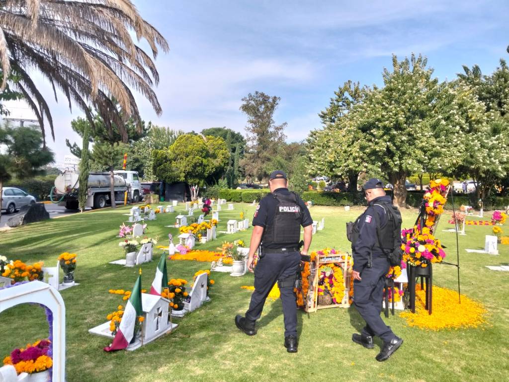 La Policía Municipal desplegó un operativo para resguardar la seguridad de quienes visitaron a sus seres queridos en los panteones.