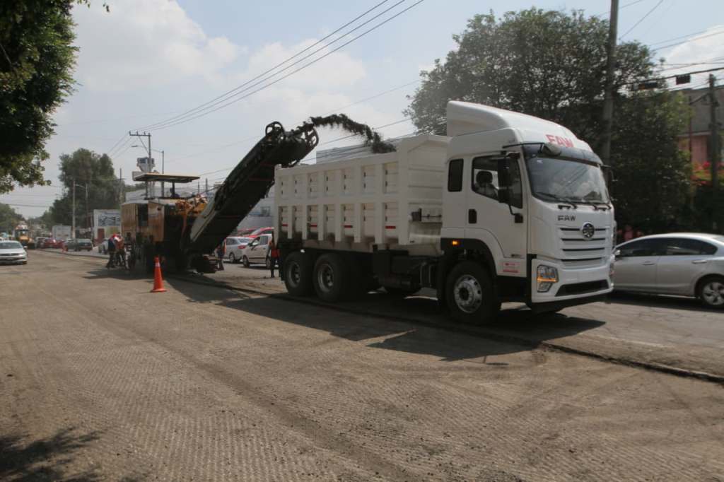 Ecatepec, Méx.- Con recursos propios el gobierno de Ecatepec repavimenta avenida Insurgentes, que cruza el primer cuadro municipal y es utilizada diariamente por miles de automovilistas que se dirigen a la Ciudad de México, obra que registra más de 80 por ciento de avance.
