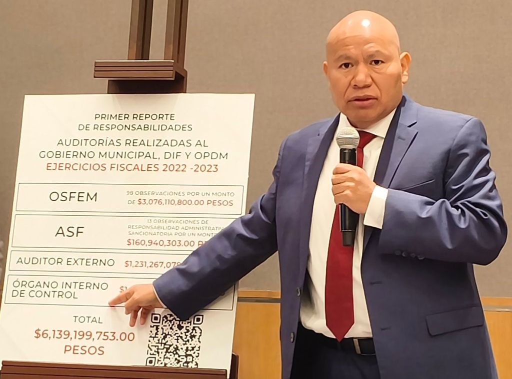 En conferencia de prensa, el Presidente Municipal, Raciel Pérez Cruz, detalló que el Órgano Superior de Fiscalización del Estado de México (OSFEM) realizó 98 observaciones por un monto de 3 mil 76 millones 110 mil 800 pesos, mientras que la Auditoría Superior de la Federación (ASF), llevó a cabo 13 observaciones de responsabilidad administrativa sancionatoria por un monto de 160 millones, 940 mil 303 pesos.