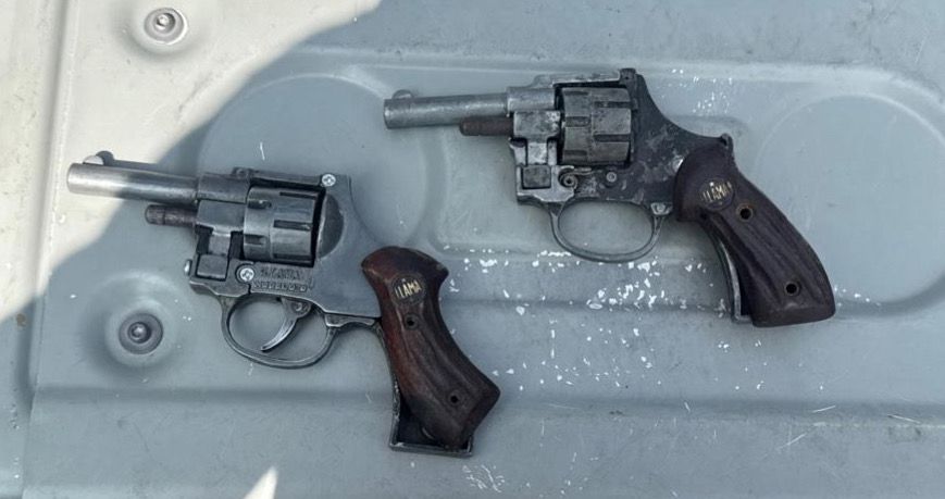Adicionalmente se le halló una navaja con mango de madera y hoja metálica de 20 centímetros de largo y el estuche de plástico que portaba tenía en su interior dos artefactos similares a un arma de fuego tipo revólver, el primero de la marca Llama modelo 8, con ausencia de tapa en empuñadura, y el segundo con ausencia de piezas y empuñadura.