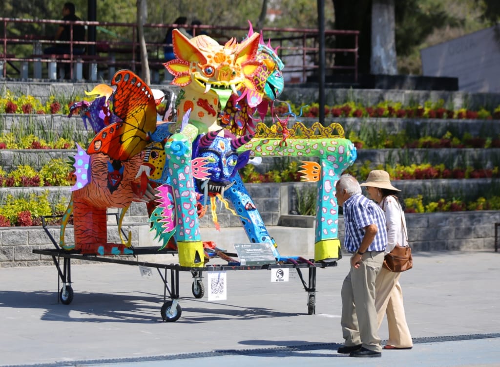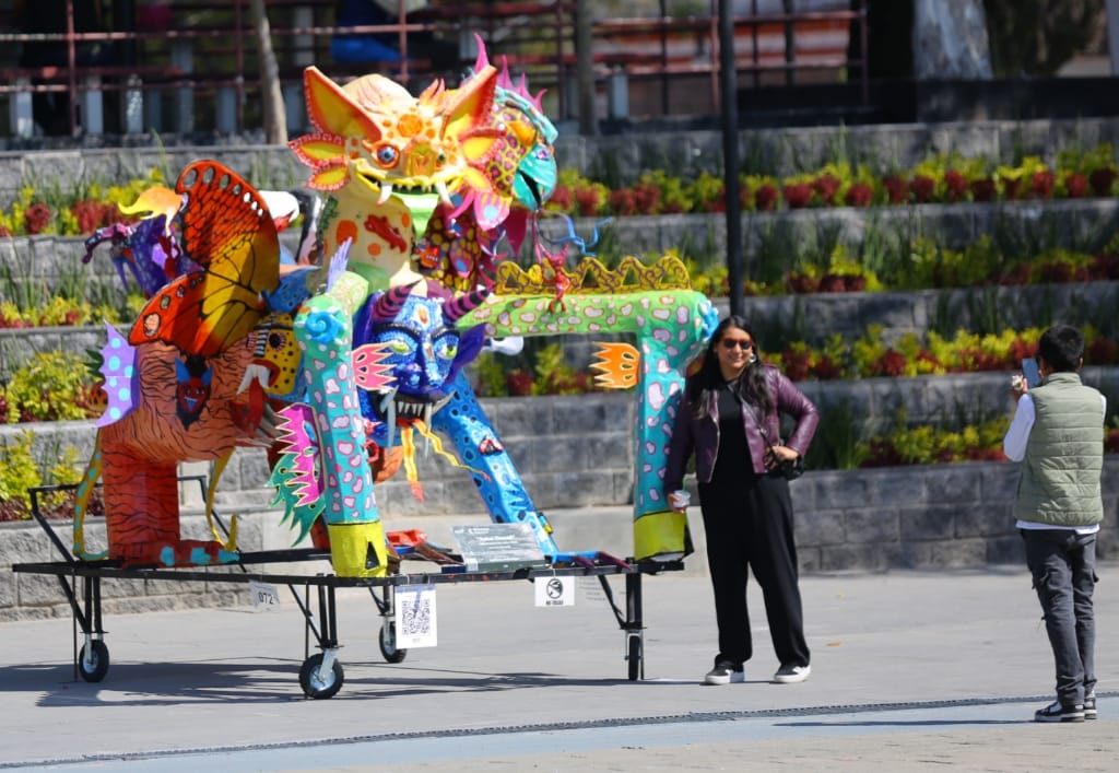 El alebrije monumental participó en el desfile de la Cdmx y ahora se exhibe en la explanada municipal.