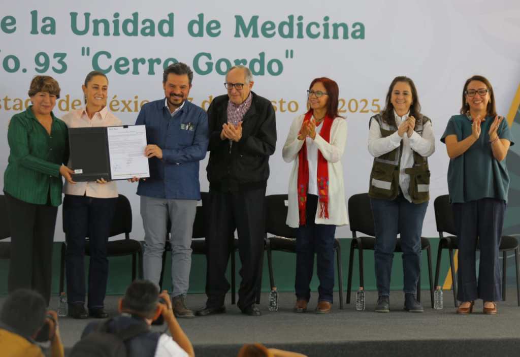 En agosto pasado, durante la inauguración de la Unidad de Medicina Familiar (UMF) del IMSS No. 93 “Cerro Gordo”, la gobernadora Delfina Gómez entregó a la presidenta Claudia Sheinbaum los documentos que acreditan la incorporación del hospital de oncología de Ecatepec al IMSS, cuya construcción fue abandonada en 2014 y será terminada por el gobierno federal. El proceso de transferencia del inmueble a autoridades federales concluyó el pasado 2 de noviembre.