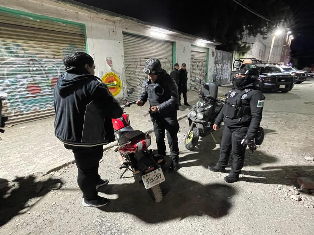 Ecatepec, Méx.- Policía municipal, con apoyo de Fuerza de Tarea Marina, realiza operativos permanentes contra robo de motocicletas para prevenir este ilícito y la comisión de otros delitos de alto impacto a bordo de estas unidades, además de incentivar el uso de equipo de seguridad.
