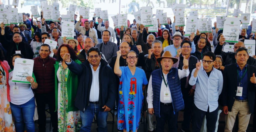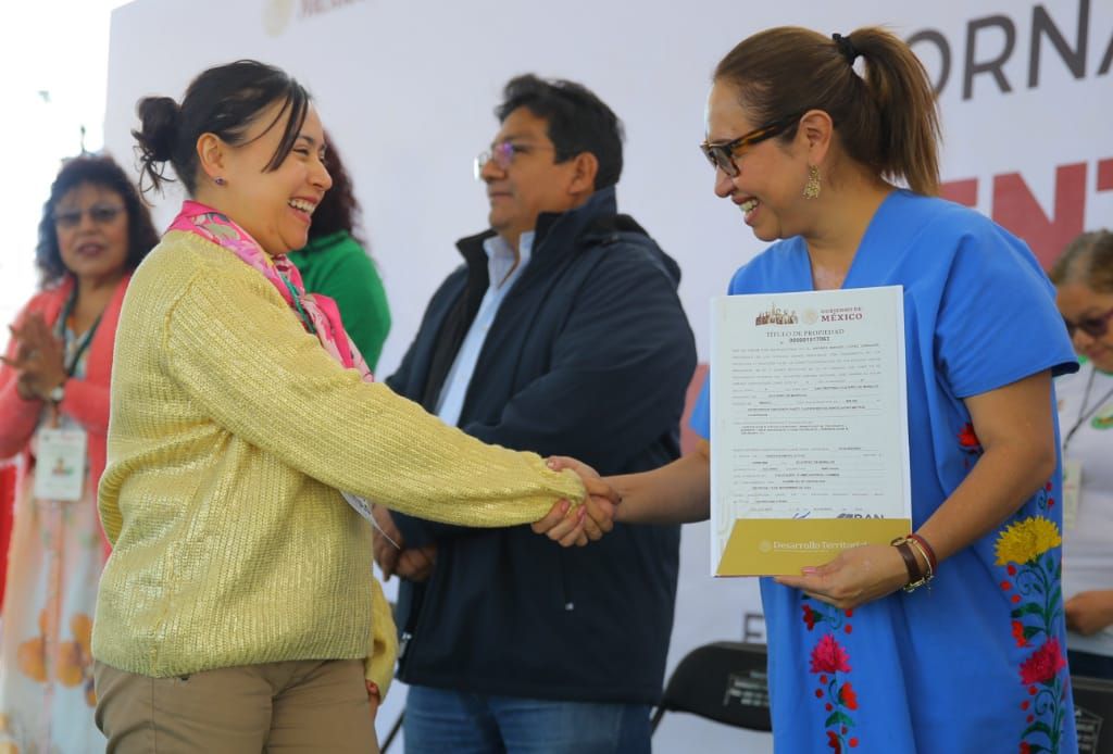 Ecatepec, Méx.- Después de 40 años de espera, 386 vecinos de Ecatepec recibieron el título de propiedad de sus viviendas, construidas en predios ejidales, lo que les otorga certeza jurídica de su patrimonio gracias al trabajo conjunto de colonos y los gobiernos municipal, estatal y federal, así como del Registro Agrario Nacional (RAN).