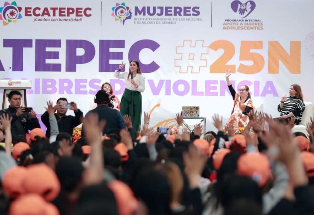 La alcaldesa, quien estuvo acompañada de la activista Olimpia Coral Melo Cruz, e impulsora de la Ley Olimpia, afirmó que en Ecatepec ser mujer significa cargar con desigualdades históricas y una fuerza vital que nadie ha podido doblegar, por eso su gobierno trabaja a marchas forzadas para romper estos ciclos.