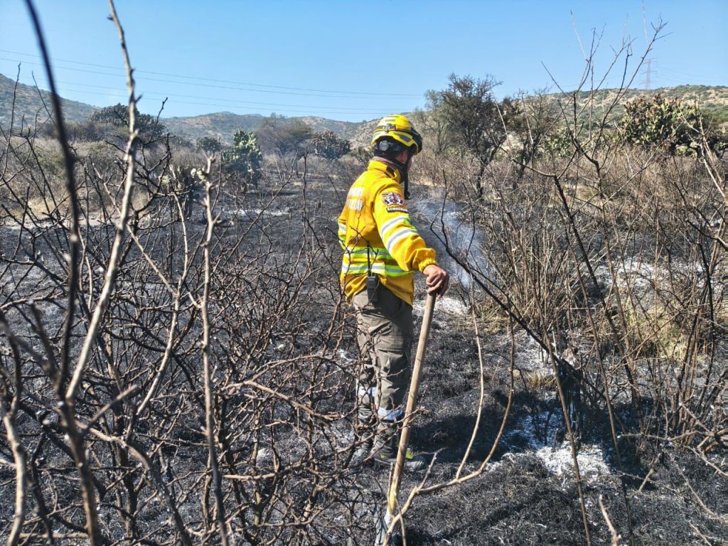 Tepotzotlán, Méx.- Personal del Heroico Cuerpo de Bomberos de Tepotzotlán controló y sofocó un incendio en la zona conocida como Las Palmitas, ubicada en la comunidad de San Mateo Xoloc, en los límites con Capula.