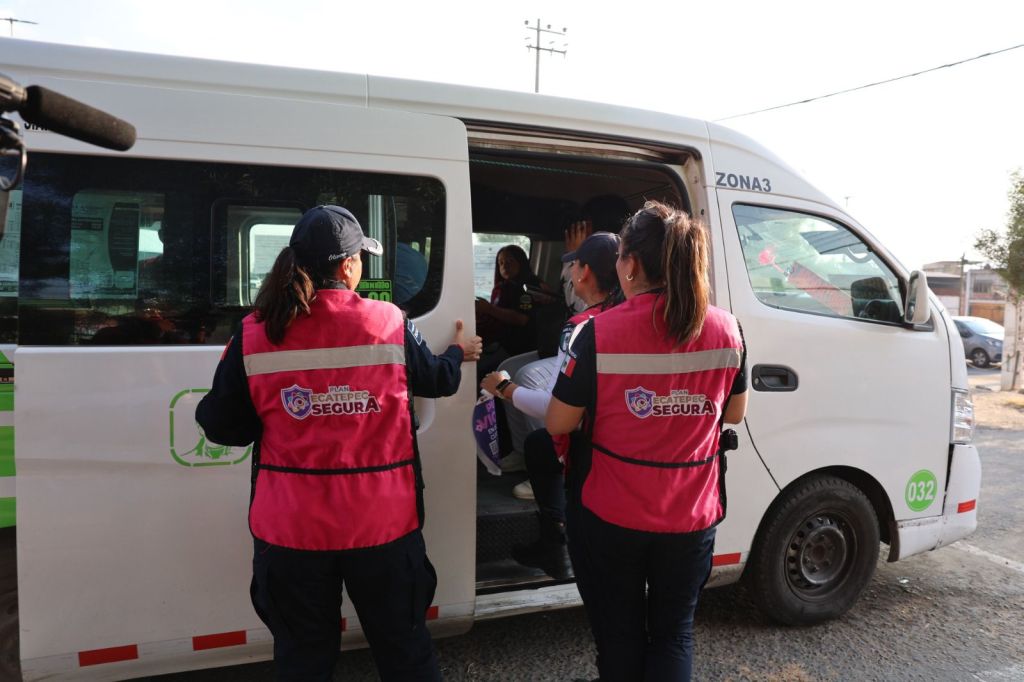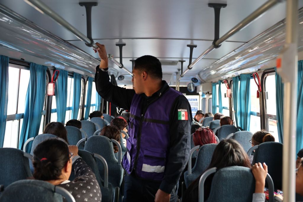 Diariamente policías municipales realizan el operativo Transporte Seguro en distintos puntos del municipio para prevenir ilícitos a pasajeros y casos de acoso a mujeres.