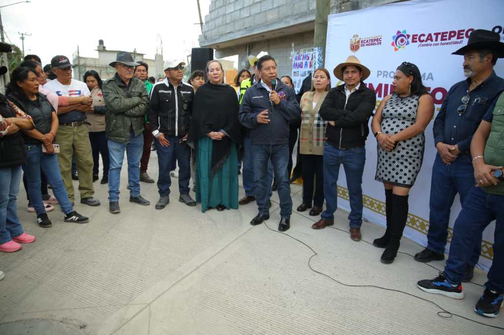 Ecatepec, Méx., a 28 de noviembre de 2025. Tres calles, con más de un kilómetro de longitud total, fueron pavimentadas con concreto hidráulico por el gobierno de Ecatepec en la colonia Playa Golondrinas, una de las comunidades con mayores rezagos del municipio.