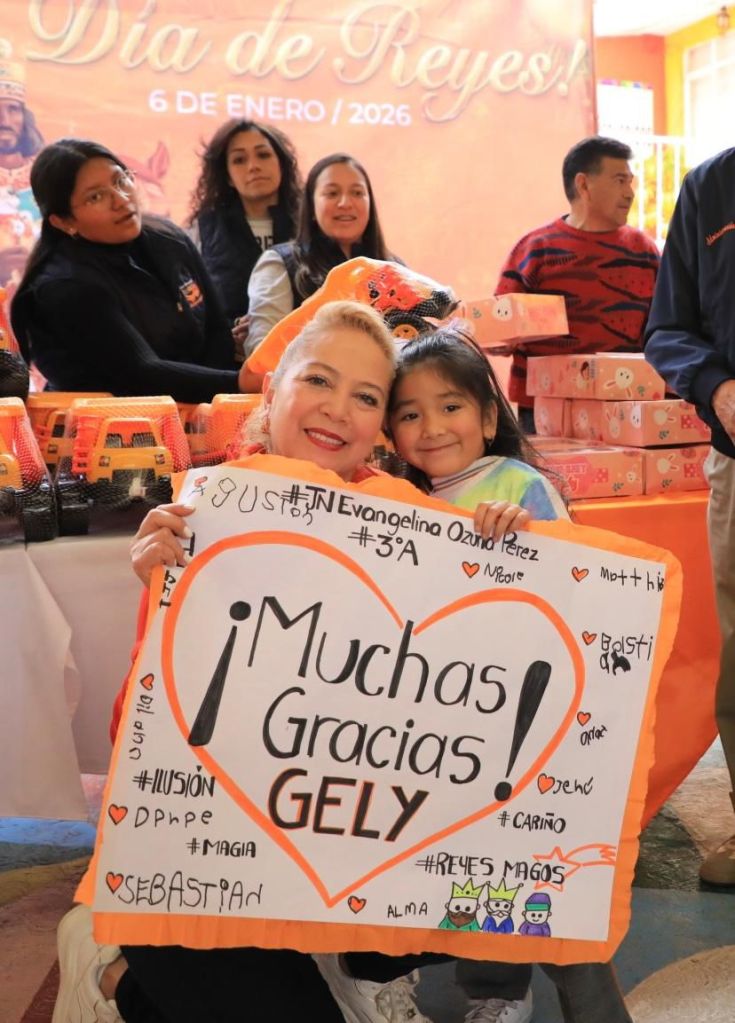 Entrega Gely Zuppa a nombre de los Reyes Magos más de 12 mil juguetes a niñas y niños en sus centros escolares de Tepotzotlán.