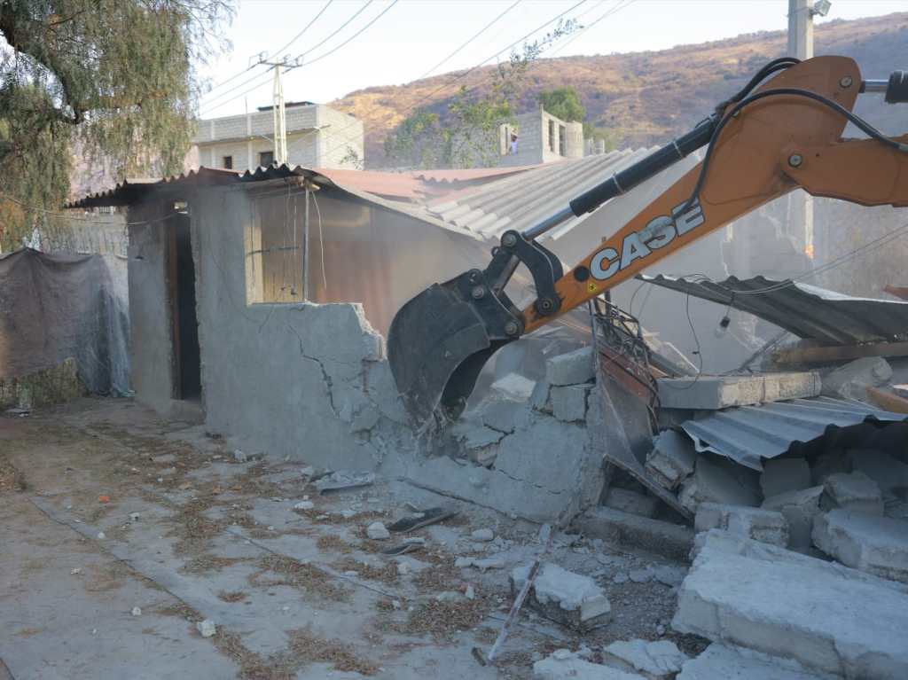 En avenida Tierra y Libertad, en La Playita, trabajadores municipales retiraron la malla ciclónica, una barda y una vivienda edificados de manera irregular en el bordo invadido de la citada barranca, debido al riesgo que representaban para los habitantes del lugar.