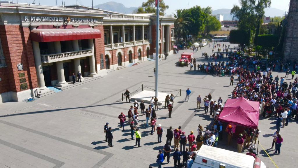 Tlalnepantla, Méx.- En punto de las 11:00 de la mañana del 18 de febrero, Tlalnepantla se sumó al Primer Simulacro 2026, luego de que sonaran las alertas sísmicas que marcaron el inicio de la evacuación de las personas de manera inmediata.