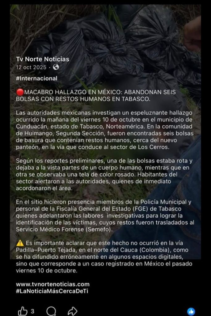 Tepotzotlán, Méx.- El Ayuntamiento de Tepotzotlán informa a la ciudadanía que es totalmente falso el supuesto hallazgo de bolsas con restos humanos en el Fraccionamiento El Trébol, información que ha comenzado a circular en redes sociales.