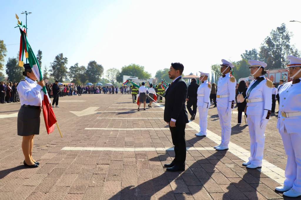 Señaló que la bandera nacional representa las raíces, la unión y la grandeza del pueblo mexicano, y congrega la historia del país, del Estado y del municipio. Conmemorar el Día de la Bandera, afirmó, es un ejercicio de memoria y un acto de reafirmación patriótica que involucra lealtad, amor y defensa de la nación.