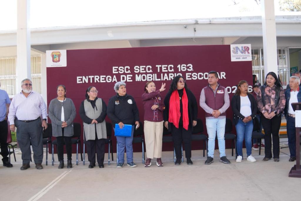 Al acudir al pueblo de San Miguel Hila, la Presidenta Municipal entregó nuevas butacas a la Secundaria Técnica 163 y giró instrucciones para que se iniciara la reparación del drenaje de ese centro educativo, para brindar a los estudiantes condiciones más dignas. Destacó que su administración, seguirá respaldando a la educación, que juega un papel clave para la construcción de la paz en la demarcación.