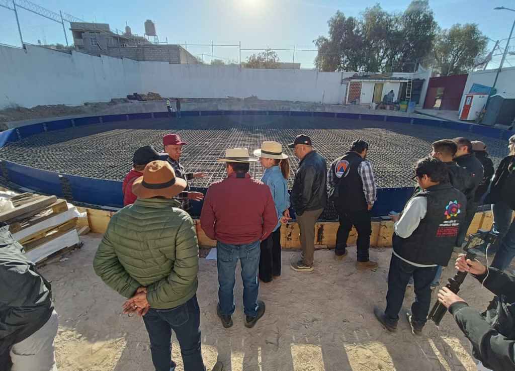 Supervisa Azucena Cisneros los trabajos de construcción del Tanque Maestro en Ciudad Cuauhtémoc; almacenará 5 mil metros cúbicos de agua.