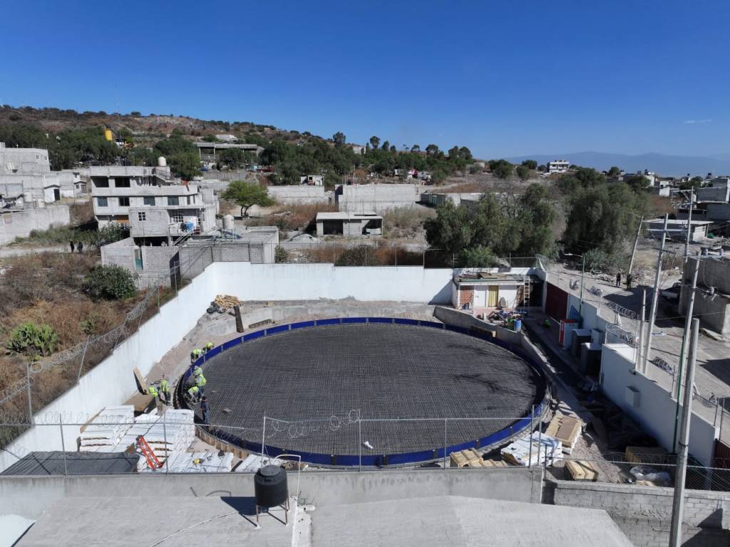 En el lugar, la alcaldesa observó la base del tanque, que requirió de gran cimentación, y recordó que antes había un depósito con capacidad de 500 metros cúbicos; sin embargo, el que construye el Gobierno del Cambio con Honestidad es de cinco mil metros cúbicos, lo que permitirá tener agua suficiente para los habitantes de la zona.