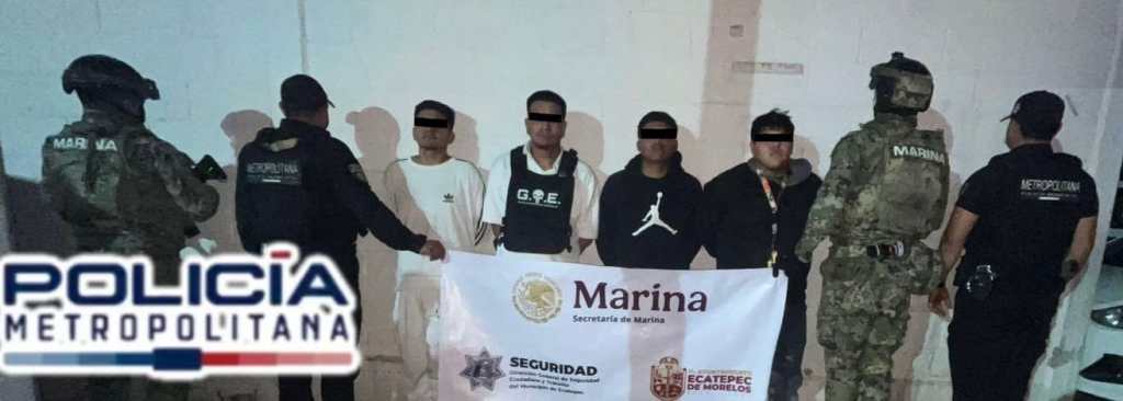 Ecatepec, Méx.- Elementos de la Policía Metropolitana detuvieron a cuatro personas, entre ellas un adolescente, quienes al parecer amagaron a dos mujeres para exigir pagos de entre 20 y 30 mil pesos por una deuda que ya había sido cubierta, tras amenazarlas con un arma blanca.