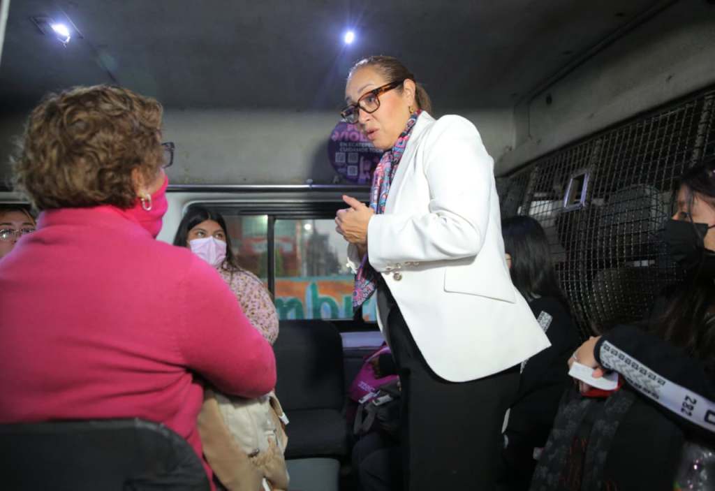 Ecatepec, Méx.- La presidenta municipal Azucena Cisneros Coss supervisó el operativo Transporte Seguro en la Avenida Recursos Hidráulicos, con el despliegue de elementos de la policía municipal, Marina, Sedena y Guardia Nacional con la intención de inhibir delitos y situaciones violentas contra mujeres, además de colocar calcomanías de la aplicación Red Violeta mediante la cual las pasajeras pueden contar con un acompañamiento virtual policiaco.