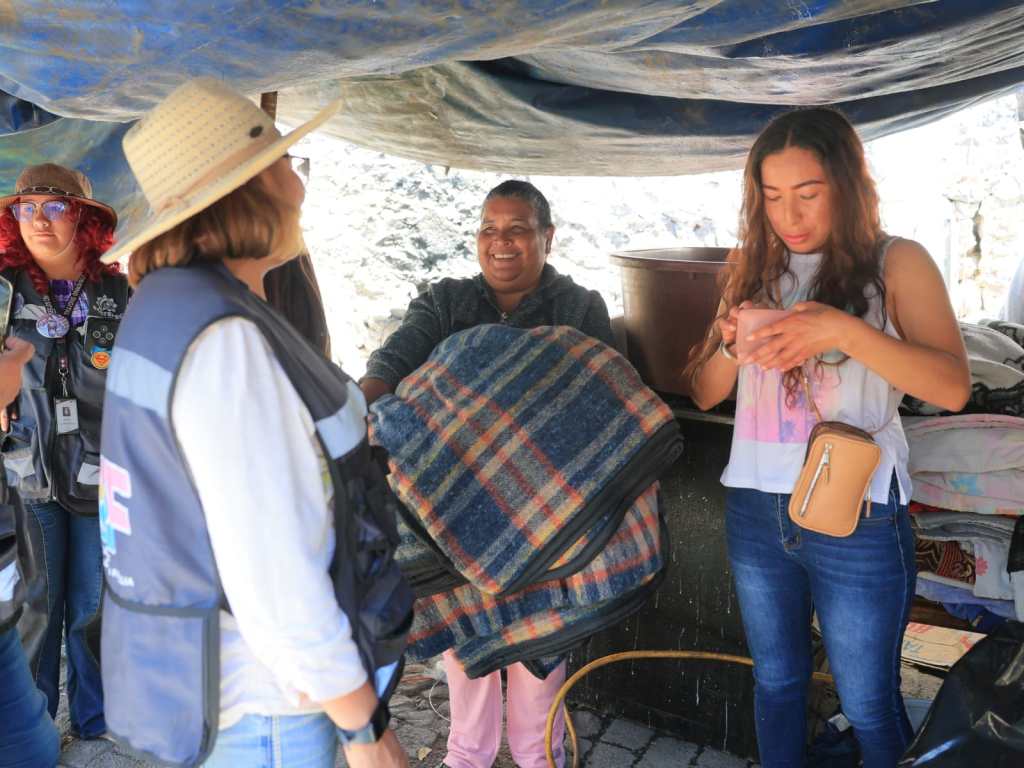 Vecinos de 7 colonias de la zona alta de la Sierra de Guadalupe recibieron láminas y cobijas, a través del DIF municipal.