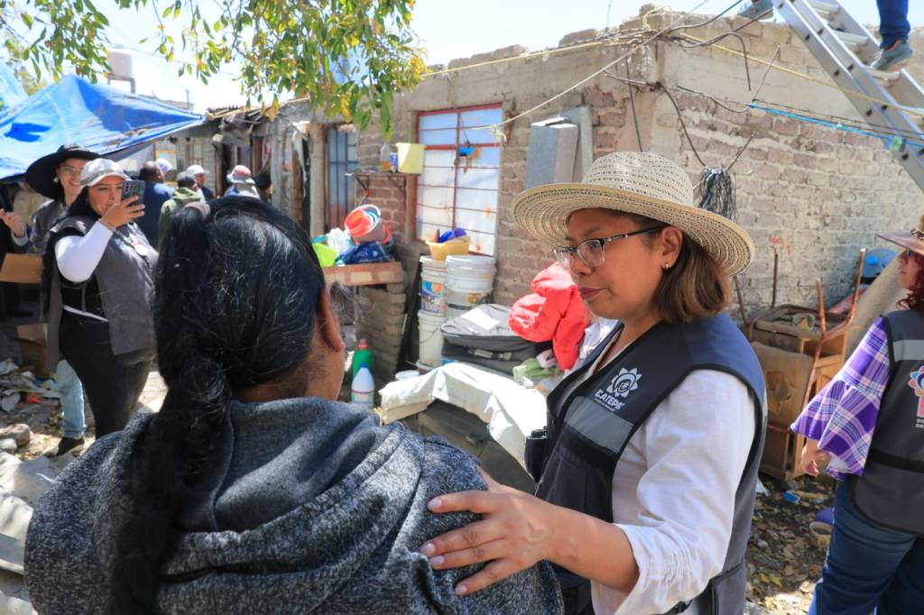 Juana Reyes Ríos también recibió apoyo, pues la vivienda de su hijo Jesús Eduardo Tovar Reyes se quedó sin techo, en calle Acambay, colonia San Carlos Cantera, a donde llegó la directora del DIF municipal, Edith Muñoz Jurado, para entregar personalmente la ayuda.