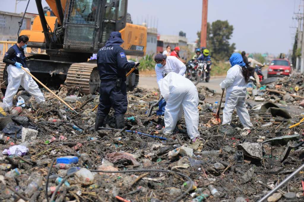 Elementos de la Dirección de Seguridad Ciudadana y Tránsito municipal, junto con personal de Rescate de Protección Civil y Bomberos, así como trabajadores de la Dirección de Servicios Públicos, acudieron al canal de aguas negras, a la altura de las colonias Luis Donaldo Colosio y Golondrinas, donde se presentaron un colectivo de madres buscadoras e integrantes de la Comisión de Búsqueda de Personas del Estado de México (Cobupem) para revisar minuciosamente la basura extraída del dren.