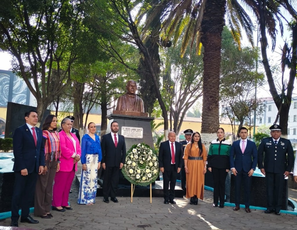Tlalnepantla, Méx.- El Presidente Municipal de Tlalnepantla, Raciel Pérez Cruz, encabezó la ceremonia conmemorativa del 220 aniversario del natalicio de Benito Juárez García, figura fundamental en la consolidación de la República y defensor incansable de la soberanía nacional.