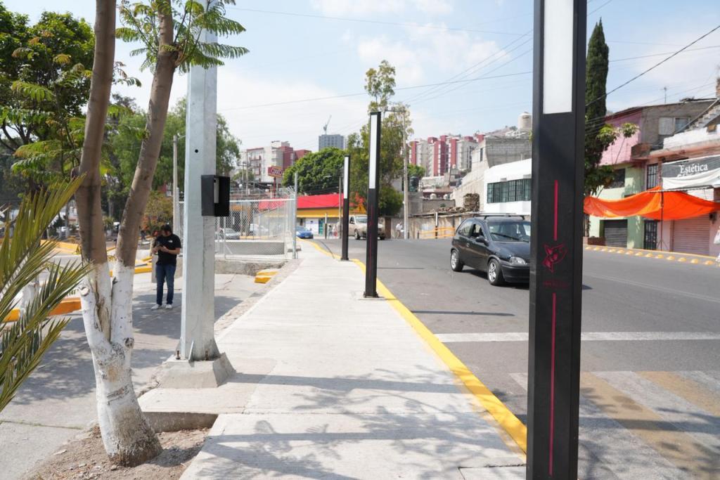 Se instalaron 10 cámaras de videovigilancia conectadas directamente al C5 y 5 botones de pánico distribuidos estratégicamente a lo largo de la vialidad. Esta intervención beneficia de manera directa a más de 15,600 habitantes de las colonias aledañas, principalmente a las mujeres, niñas y adolescentes que diariamente transitan por esta zona para acudir a sus centros de trabajo o escuelas.