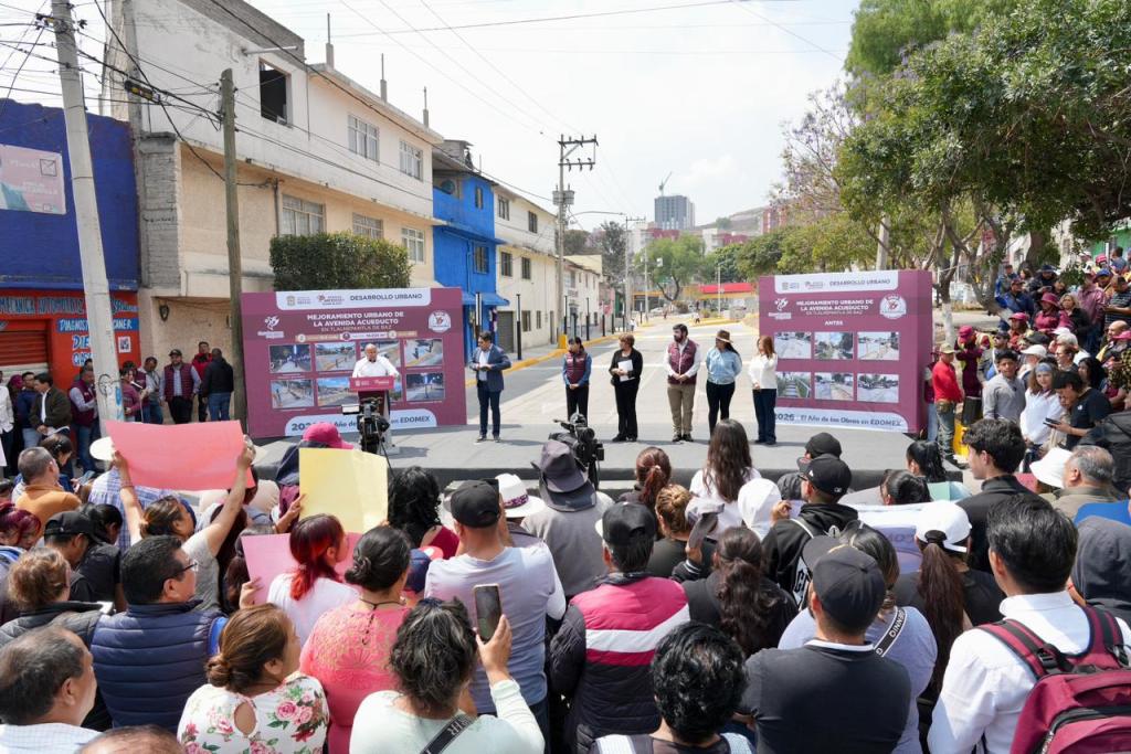 Tlalnepantla, Méx.- La Gobernadora del Estado de México, Delfina Gómez Álvarez, encabezó junto al Presidente Municipal de Tlalnepantla, Raciel Pérez Cruz, la entrega de las obras de mejoramiento urbano en la Avenida Acueducto, en la Col. Jorge Jiménez Cantú, bajo la estrategia “Senderos Mexiquenses, Caminemos Seguras”, con una inversión neta de 10.8 millones de pesos.