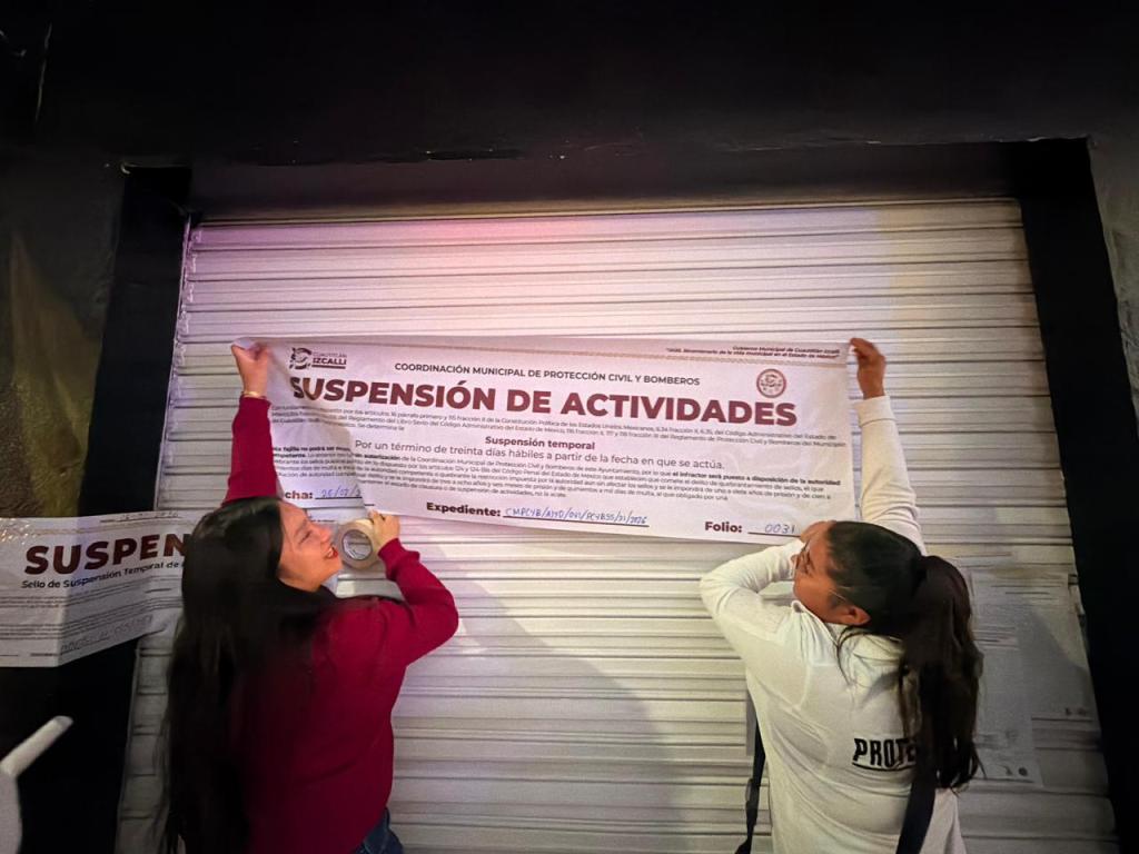 Entre los establecimientos clausurados se encuentran “La Bikina”, ubicada en Granjas de Guadalupe; “Las Litronas”, en la Unidad Fidel Velázquez; y “La Curandera”, en Centro Urbano. Asimismo, se suspendieron actividades en tres establecimientos del pueblo de San Francisco Tepojaco.
