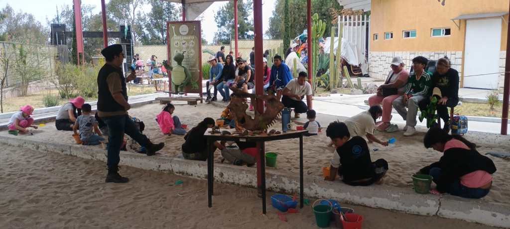 Relató que el Museo Jurásica cuenta con dinosaurios animatrónicos, sala de proyección de cortometrajes y arenero, este último donde menores buscan fósiles entre la arena.