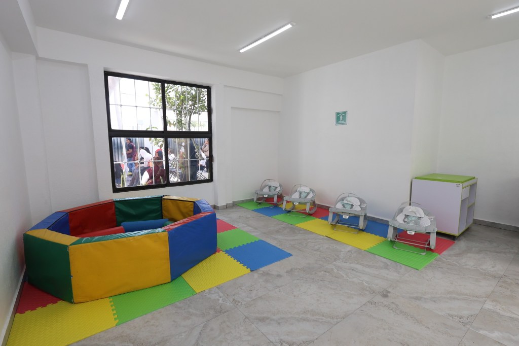 El CECI atiende a menores desde los tres meses hasta los tres años con 11 meses de edad, cuenta con servicios que incluyen estimulación temprana, desarrollo cognitivo, áreas de lactancia y seguimiento nutricional con desayuno y comida incluidos.