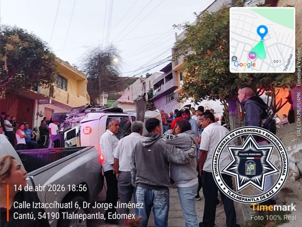 Tlalnepantla, Méx.- Por instrucciones precisas del Presidente Municipal, Raciel Pérez Cruz, las dependencias de Seguridad Pública, Protección Civil y Bomberos de Tlalnepantla implementaron un operativo de respuesta inmediata para atender a las víctimas de una volcadura de una unidad de transporte público ocurrida en la colonia Doctor Jorge Jiménez Cantú.