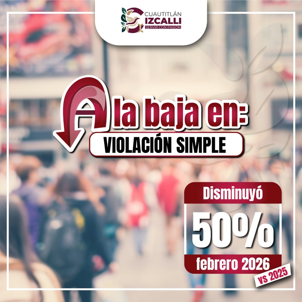 Cuautitlán Izcalli presentó una baja en las denuncias por violación simple en febrero de 2026, de acuerdo con cifras oficiales del Secretariado Ejecutivo del Sistema Nacional de Seguridad Pública (SESNSP).