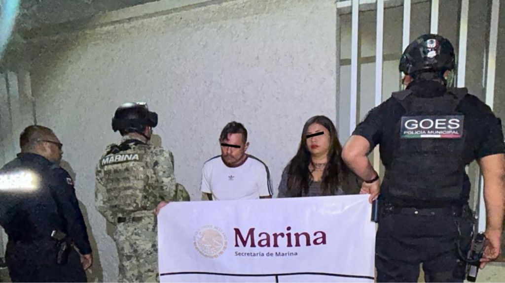 Por estos hechos fueron detenidos Emily Jomayra “N”, de 25 años de edad, y Diego Alonso “N”, de 39 años, quienes fueron trasladados al Centro de Justicia de Ecatepec como probables responsables de delitos contra la salud, portación, tráfico y acopio de armas prohibidas.