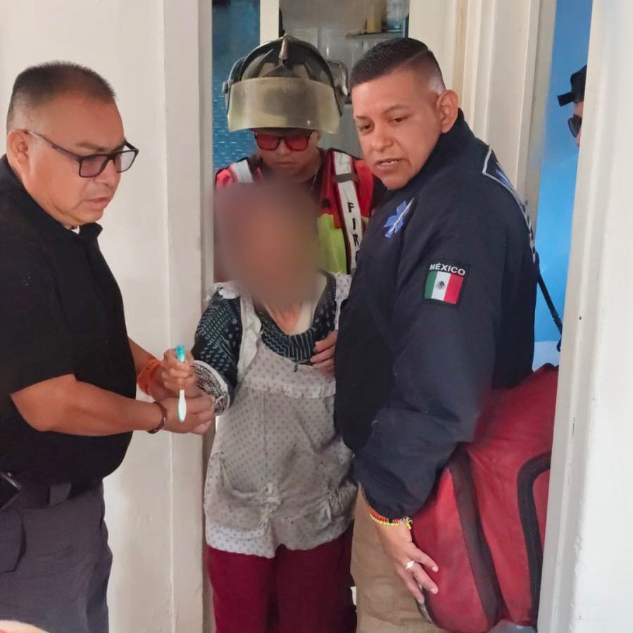 Al llegar al sitio ubicaron que estaba encerrada en un departamento con chapa eléctrica en el tercer piso, sin poder salir, por lo que elementos de Rescate Urbano tuvieron que realizar diversas maniobras para ingresar al inmueble y hallaron a la adulta mayor en condiciones vulnerables junto a dos lomitos.