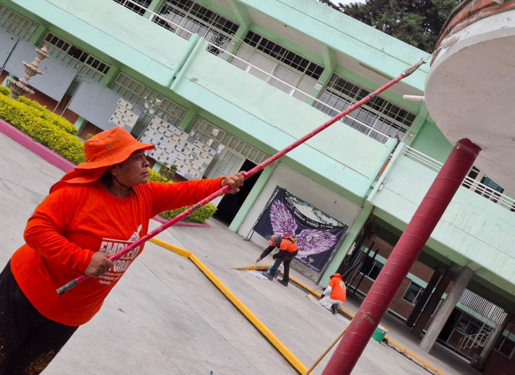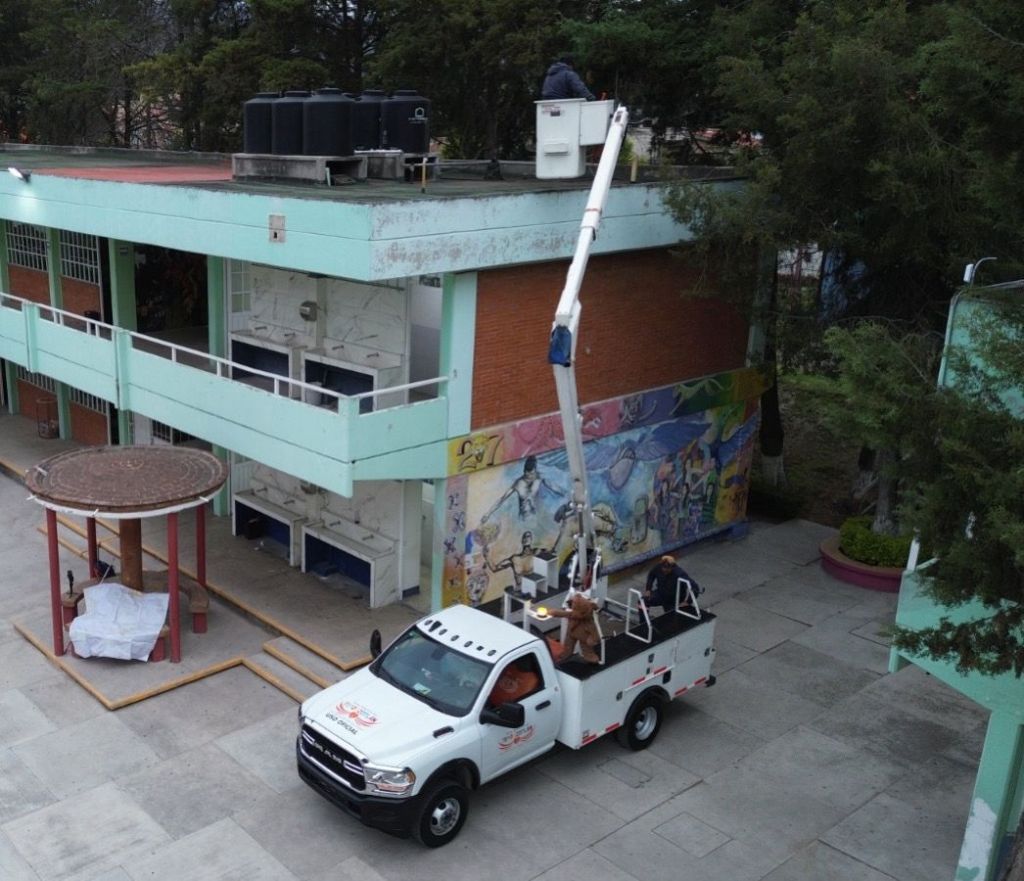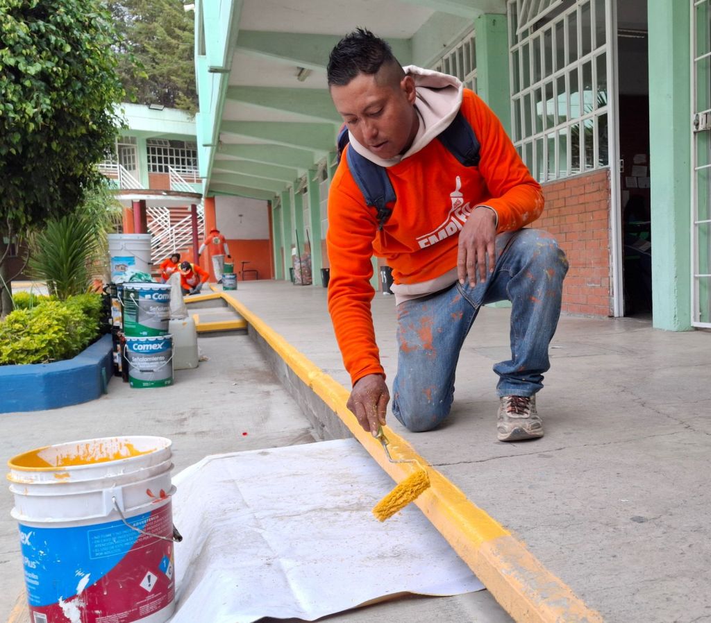 Como parte de la intervención realizada en el plantel, personal del Ayuntamiento llevó a cabo diversas acciones de mejoramiento, entre las que destacan: pinta de punto de reunión, guarniciones y una palapa; aclareo de pino; poda de pasto; pinta del módulo de ejercicio; marcaje de canchas; reparación de escalera; desazolve por medio de váctor; retiro de rama de eucalipto y remoción de ramas de pino; así como pinta de escaleras del edificio de dirección y colocación de lámparas.
