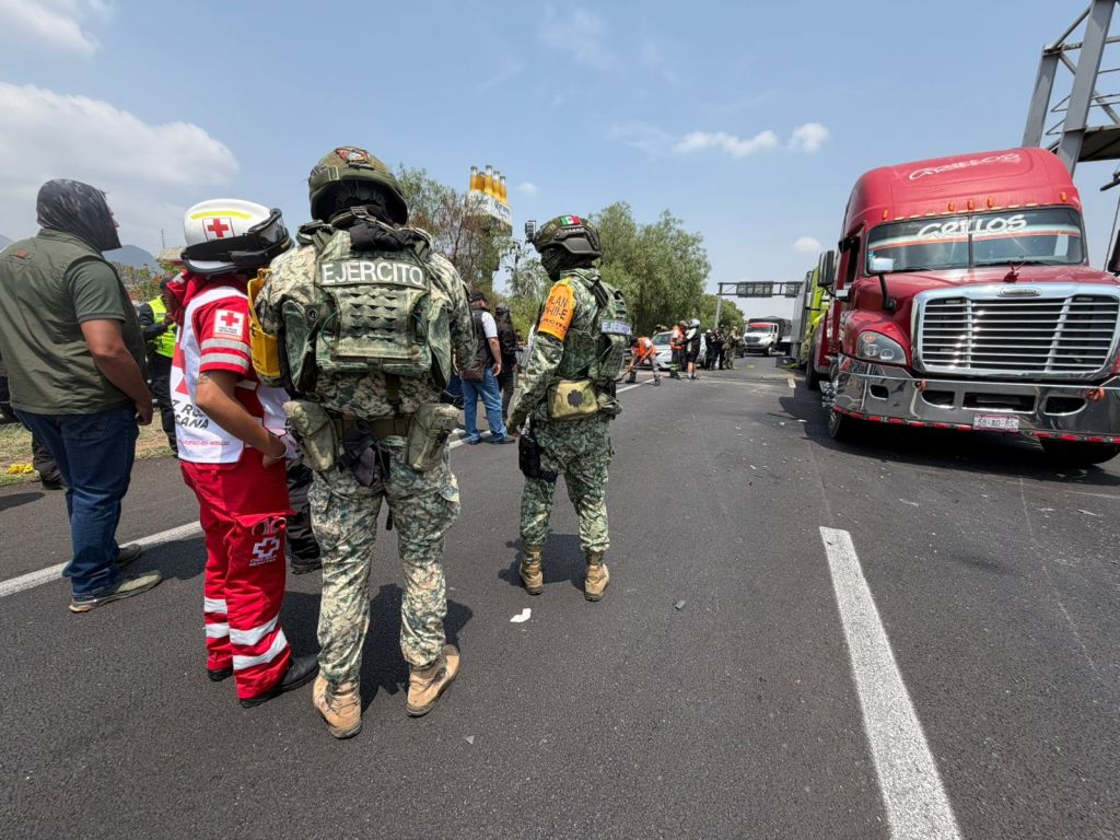 “Estamos atendiendo una emergencia con nueve vehículos involucrados y un tractocamión tenemos a personal Prehospitalario, Bomberos y Rescate Urbano, ya se hizo el trabajo de rescate de lesionados que quedaron prensados”, explicó Jesús Clara González, director de Protección Civil Municipal