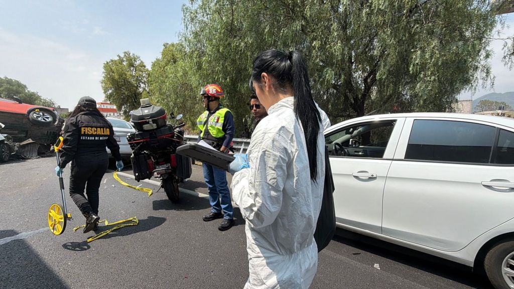 Al sitio llegaron peritos de la Fiscalía General de Justicia del Estado de México y personal del Servicio Médico Forense para realizar el levantamiento del cuerpo de un hombre de unos 50 años que falleció en el lugar tras el impacto.