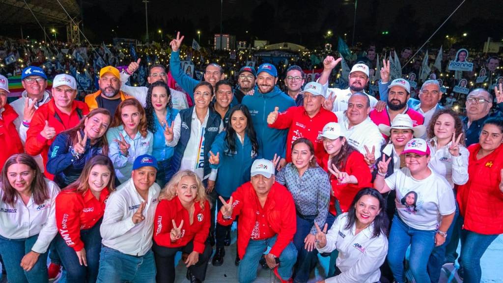 En el cierre, el candidato estuvo acompañado en el estrado del Presidente del PAN estatal, Anuar Azar, la candidata a Presidenta Municipal, Karla Fiesco, el candidato a diputado federal, Paco Rojas y la candidata a diputada local, Joanna F. Torres, quienes en equipo dejan una huella imborrable en las y los mexiquenses.