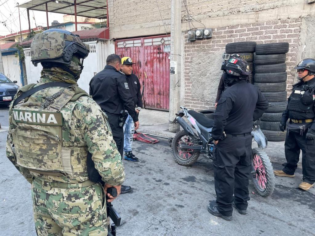Los hechos ocurrieron en la colonia Fidel Velázquez, cuando personal operativo atendió oportunamente una solicitud de auxilio de una persona que refirió haber sido víctima de un asalto momentos antes, mientras viajaba en una unidad de transporte público. Gracias al seguimiento inmediato y la coordinación operativa, se logró ubicar a los presuntos responsables en la calle Itzcóatl.