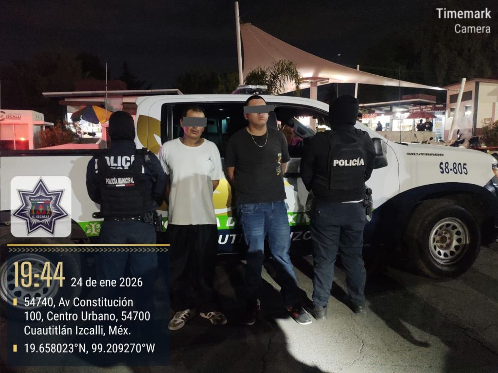 Cuautitlán Izcalli, Méx.- La Comisaría General de Seguridad Ciudadana de Cuautitlán Izcalli informa que, como resultado de los recorridos preventivos y de vigilancia realizados en el municipio, elementos de esta corporación lograron la detención de dos personas del sexo masculino, relacionadas con el delito de robo con violencia a transporte público.
