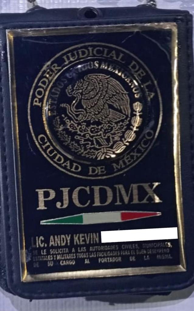 Al revisar el vehículo hallaron un arma de fuego tipo fúsil con mira holográfica R15 calibre 5.56, abastecida con 18 cartuchos útiles, y detectaron que uno de los masculinos, Andy Kevin “N”, de 26 años, portaba una credencial del Poder Judicial de la Ciudad de México con el cargo de Administrativo Especializado, adscrito a la Dirección de Administración de Personal, la cual al parecer no se encontraba vigente ya que no estaba sellada en el año 2026, además de que el sujeto no pudo presentar licencia de portación de armas.