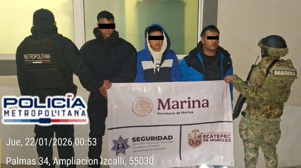 Detienen policias municipales de Ecatepec a tres delincuentes en el Call Center con armas y droga, pertenecen al grupo criminal La chokiza.