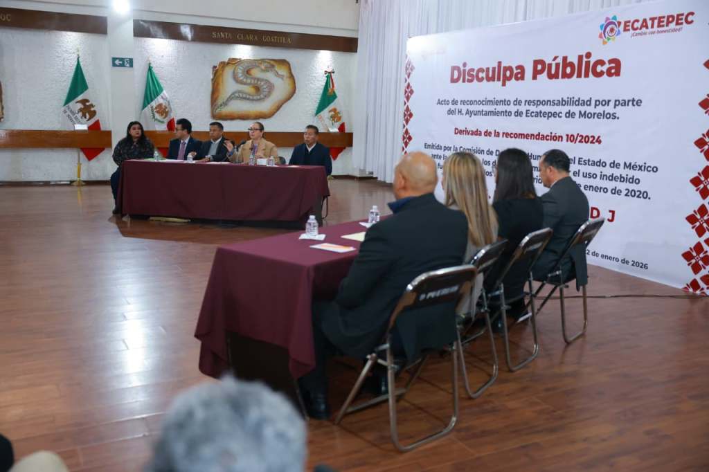Ecatepec, Méx.- La alcaldesa Azucena Cisneros Coss ofreció, a nombre del Ayuntamiento, una disculpa pública a la sociedad y a familiares de un ciudadano que murió derivado del uso excesivo de la fuerza de policías municipales, en hechos ocurridos el 17 de enero de 2020, durante la administración municipal 2019-2021, y por los que la Comisión de Derechos Humanos del Estado de México (Codhem) emitió la recomendación 10/2024.